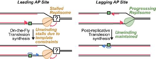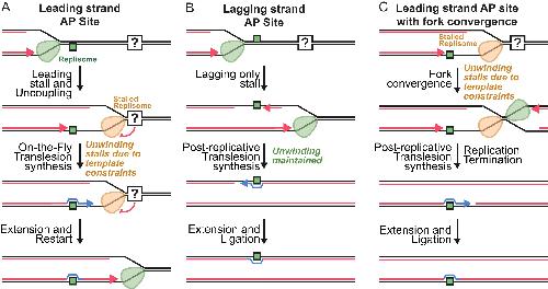 Leading and lagging strand abasic sites differentially affect vertebrate replisome progression but involve analogous bypass mechanisms., Cranford MT, Dahmen SN, Cortez D, Dewar JM., Nucleic Acids Res. September 23, 2025; 53 (18):