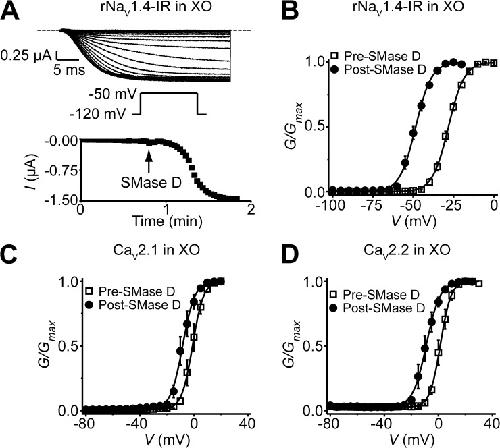 Tuning voltage-gated channel activity and cellular excitability with a sphingomyelinase., Combs DJ, Shin HG, Xu Y, Ramu Y, Lu Z., J Gen Physiol. October 1, 2013; 142 (4): 367-80.
