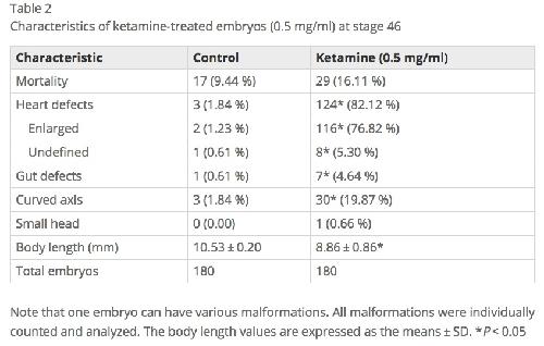 Early ketamine exposure results in cardiac enlargement and heart dysfunction in Xenopus embryos., Guo R, Liu G, Du M, Shi Y, Jiang P, Liu X, Liu L, Liu J, Xu Y., BMC Anesthesiol. April 18, 2016; 16 23.