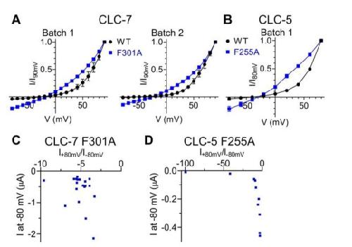 Divergent Cl- and H+ pathways underlie transport coupling and gating in CLC exchangers and channels., Leisle L, Xu Y, Fortea E, Lee S, Galpin JD, Vien M, Ahern CA, Accardi A, Bernèche S., Elife. April 28, 2020; 9
