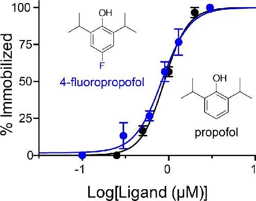 Photoaffinity labeling the propofol binding site in GLIC., Chiara DC, Gill JF, Chen Q, Tillman T, Dailey WP, Eckenhoff RG, Xu Y, Tang P, Cohen JB., Biochemistry. January 14, 2014; 53 (1): 135-42.
