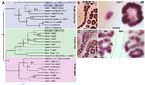 Individual variation and hormonal modulation of a sodium channel beta subunit in the electric organ correlate with variation in a social signal. , Liu H , Wu MM, Zakon HH ., Dev Neurobiol. September 1, 2007; 67 (10): 1289-304.