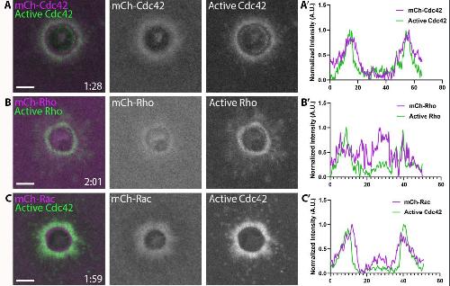 Cross-talk-dependent cortical patterning of Rho GTPases during cell repair., Moe A, Holmes W, Golding AE, Zola J, Swider ZT, Edelstein-Keshet L, Bement W., Mol Biol Cell. August 1, 2021; 32 (16): 1417-1432.