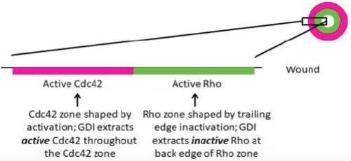 Pattern formation of Rho GTPases in single cell wound healing., Simon CM, Vaughan EM, Bement WM, Edelstein-Keshet L., Mol Biol Cell. February 1, 2013; 24 (3): 421-32.