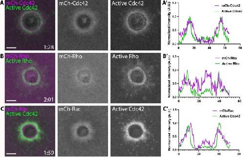 Extraction of active RhoGTPases by RhoGDI regulates spatiotemporal patterning of RhoGTPases., Golding AE, Visco I, Bieling P, Bement WM., Elife. October 24, 2019; 8