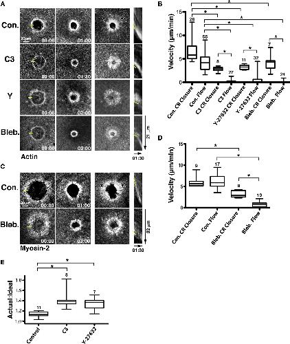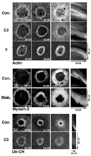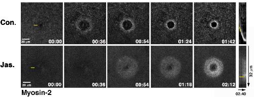 Contraction and polymerization cooperate to assemble and close actomyosin rings around Xenopus oocyte wounds., Mandato CA, Bement WM., J Cell Biol. August 20, 2001; 154 (4): 785-97.