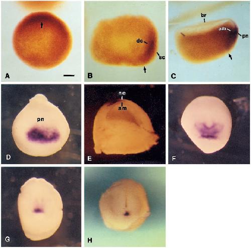 The homeobox-containing gene XANF-1 may control development of the Spemann organizer., Zaraisky AG, Ecochard V, Kazanskaya OV, Lukyanov SA, Fesenko IV, Duprat AM., Development. November 1, 1995; 121 (11): 3839-47. |