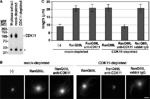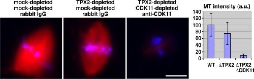 Cdk11 is a RanGTP-dependent microtubule stabilization factor that regulates spindle assembly rate. , Yokoyama H , Gruss OJ , Rybina S, Caudron M, Schelder M, Wilm M, Mattaj IW , Karsenti E ., J Cell Biol. March 10, 2008; 180 (5): 867-75.