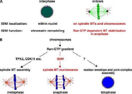 ISWI is a RanGTP-dependent MAP required for chromosome segregation. , Yokoyama H , Rybina S, Santarella-Mellwig R, Mattaj IW , Karsenti E ., J Cell Biol. December 14, 2009; 187 (6): 813-29.