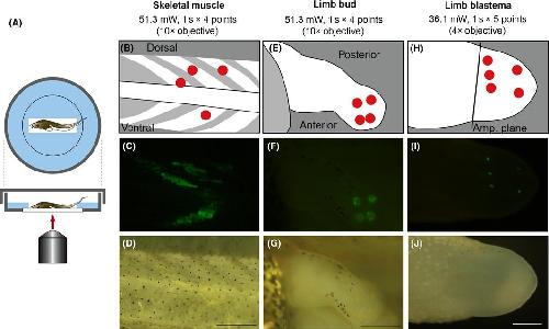 Infrared Laser-Mediated Gene Induction at the Single-Cell Level in the Regenerating Tail of Xenopus laevis Tadpoles. , Hasugata R, Hayashi S, Kawasumi-Kita A, Sakamoto J, Kamei Y, Yokoyama H ., Cold Spring Harb Protoc. December 3, 2018; 2018 (12):