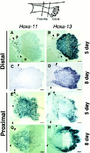 Analysis of hoxa11 and hoxa13 expression during patternless limb regeneration in Xenopus. , Ohgo S, Itoh A, Suzuki M , Satoh A , Yokoyama H , Tamura K ., Dev Biol. February 15, 2010; 338 (2): 148-57.