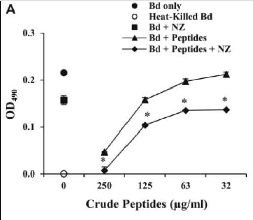 Development of an assay for testing the antimicrobial activity of skin peptides against the amphibian chytrid fungus (Batrachochytrium dendrobatidis) using Xenopus laevis. , Gibble RE, Rollins-Smith L , Baer KN., Ecotoxicol Environ Saf. October 1, 2008; 71 (2): 506-13.