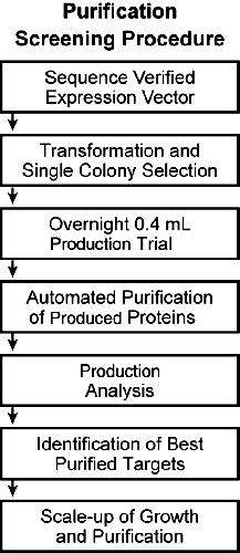 Small-scale, semi-automated purification of eukaryotic proteins for structure determination. , Frederick RO, Bergeman L, Blommel PG, Bailey LJ, McCoy JG, Song J, Meske L, Bingman CA, Riters M, Dillon NA, Kunert J, Yoon JW , Lim A, Cassidy M, Bunge J, Aceti DJ, Primm JG, Markley JL, Phillips GN, Fox BG., J Struct Funct Genomics. December 1, 2007; 8 (4): 153-66.