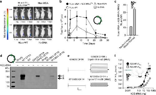 Engineered transfer RNAs for suppression of premature termination codons. , Lueck JD, Yoon JS , Perales-Puchalt A, Mackey AL, Infield DT, Behlke MA, Pope MR, Weiner DB, Skach WR, McCray PB, Ahern CA., Nat Commun. February 18, 2019; 10 (1): 822.