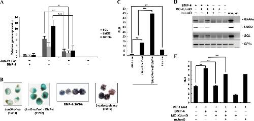 The function of heterodimeric AP-1 comprised of c- Jun and c- Fos in activin mediated Spemann organizer gene expression. , Lee SY, Yoon J , Lee HS , Hwang YS, Cha SW , Jeong CH, Kim JI , Park JB , Lee JY , Kim S, Park MJ, Dong Z, Kim J ., PLoS One. January 1, 2011; 6 (7): e21796.