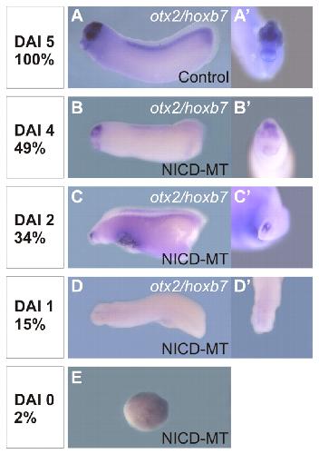 Notch activates sonic hedgehog and both are involved in the specification of dorsal midline cell-fates in Xenopus. , López SL , Paganelli AR, Siri MV, Ocaña OH, Franco PG, Carrasco AE ., Development. May 1, 2003; 130 (10): 2225-38.