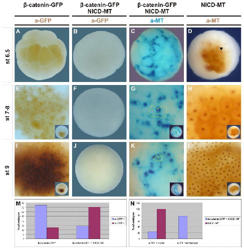 Notch destabilises maternal beta-catenin and restricts dorsal- anterior development in Xenopus. , Acosta H, López SL , Revinski DR, Carrasco AE ., Development. June 1, 2011; 138 (12): 2567-79.