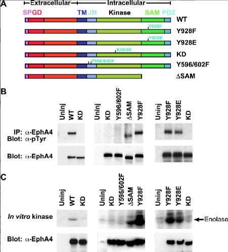 Tyr-298 in ephrinB1 is critical for an interaction with the Grb4 adaptor protein. , Bong YS, Park YH, Lee HS , Mood K, Ishimura A, Daar IO ., Biochem J. January 15, 2004; 377 (Pt 2): 499-507.