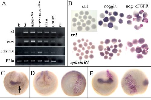Morphogenetic movements underlying eye field formation require interactions between the FGF and ephrinB1 signaling pathways. , Moore KB , Mood K, Daar IO , Moody SA ., Dev Cell. January 1, 2004; 6 (1): 55-67.