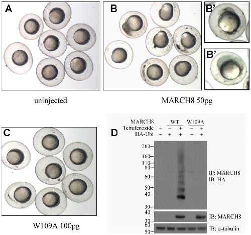 Cell adhesion in zebrafish embryos is modulated by March 8. , Kim MH, Rebbert ML, Ro H, Won M, Dawid IB ., PLoS One. January 1, 2014; 9 (4): e94873.