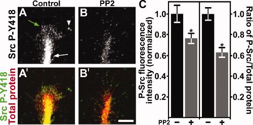 Src-dependent tyrosine phosphorylation at the tips of growth cone filopodia promotes extension. , Robles E, Woo S, Gomez TM ., J Neurosci. August 17, 2005; 25 (33): 7669-81.