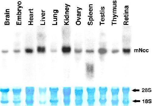 Rhythmic expression of Nocturnin mRNA in multiple tissues of the mouse. , Wang Y, Osterbur DL, Megaw PL, Tosini G, Fukuhara C, Green CB , Besharse JC ., BMC Dev Biol. January 1, 2001; 1 9.