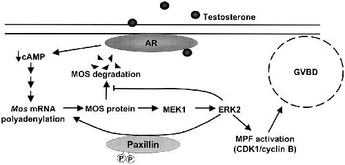 Paxillin regulates steroid-triggered meiotic resumption in oocytes by enhancing an all-or-none positive feedback kinase loop. , Rasar M, DeFranco DB, Hammes SR ., J Biol Chem. December 22, 2006; 281 (51): 39455-64.