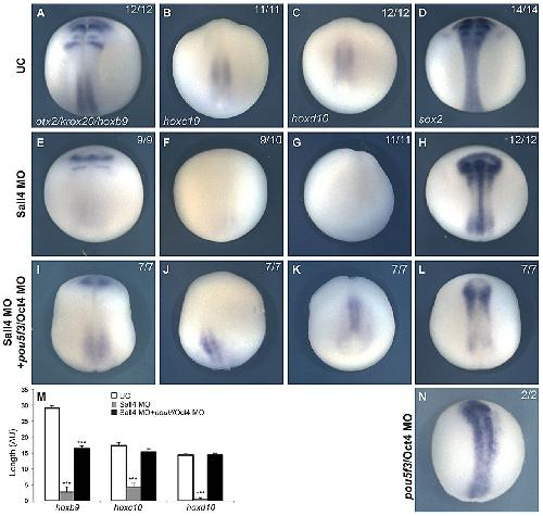 sall1 and sall4 repress pou5f3 family expression to allow neural patterning, differentiation, and morphogenesis in Xenopus laevis. , Exner CRT, Kim AY, Mardjuki SM, Harland RM ., Dev Biol. May 1, 2017; 425 (1): 33-43.