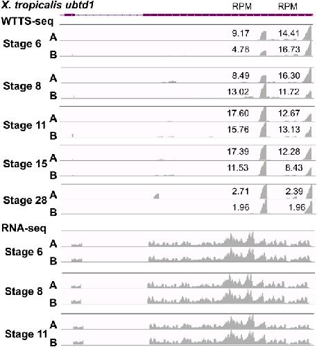 Accurate Profiling of Gene Expression and Alternative Polyadenylation with Whole Transcriptome Termini Site Sequencing (WTTS-Seq). , Zhou X , Li R, Michal JJ, Wu XL, Liu Z, Zhao H , Xia Y, Du W, Wildung MR, Pouchnik DJ, Harland RM , Jiang Z ., Genetics. June 1, 2016; 203 (2): 683-97.