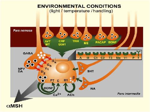 Plasticity of melanotrope cell regulations in Xenopus laevis. , Roubos EW , Van Wijk DC, Kozicz T, Scheenen WJ, Jenks BG ., Eur J Neurosci. December 1, 2010; 32 (12): 2082-6.