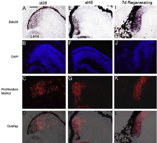 RNA helicase Ddx39 is expressed in the developing central nervous system, limb, otic vesicle, branchial arches and facial mesenchyme of Xenopus laevis. , Wilson JM, Martinez-De Luna RI , Hodiri HM, Smith R , King MW , Mescher AL , Neff AW , Belecky-Adams TL., Gene Expr Patterns. January 1, 2010; 10 (1): 44-52.