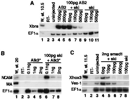 Ski represses bone morphogenic protein signaling in Xenopus and mammalian cells., Wang W, Mariani FV, Harland RM, Luo K., Proc Natl Acad Sci U S A. December 19, 2000; 97 (26): 14394-9. |
