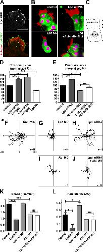 Lamellipodin and the Scar/WAVE complex cooperate to promote cell migration in vivo. , Law AL, Vehlow A, Kotini M, Dodgson L, Soong D, Theveneau E , Bodo C, Taylor E, Navarro C, Perera U, Michael M , Dunn GA, Bennett D, Mayor R , Krause M., J Cell Biol. November 25, 2013; 203 (4): 673-89.