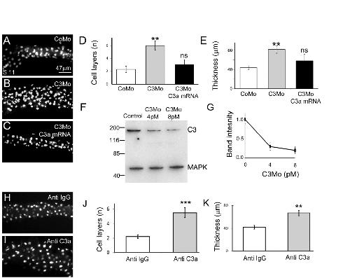Complement fragment C3a controls mutual cell attraction during collective cell migration. , Carmona-Fontaine C, Theveneau E , Tzekou A, Tada M , Woods M, Page KM, Parsons M, Lambris JD, Mayor R ., Dev Cell. December 13, 2011; 21 (6): 1026-37.
