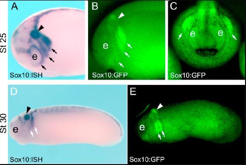 Characterization of Pax3 and Sox10 transgenic Xenopus laevis embryos as tools to study neural crest development. , Alkobtawi M, Ray H , Barriga EH , Moreno M, Kerney R, Monsoro-Burq AH , Saint-Jeannet JP , Mayor R ., Dev Biol. December 1, 2018; 444 Suppl 1 S202-S208.