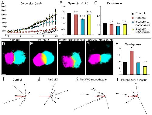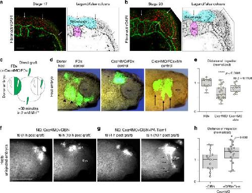 Contact inhibition of locomotion in vivo controls neural crest directional migration. , Carmona-Fontaine C, Matthews HK, Kuriyama S , Moreno M, Dunn GA, Parsons M, Stern CD, Mayor R ., Nature. December 18, 2008; 456 (7224): 957-61.