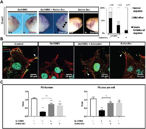 The Ric-8A/Gα13/FAK signalling cascade controls focal adhesion formation during neural crest cell migration in Xenopus. , Toro-Tapia G, Villaseca S, Beyer A, Roycroft A, Marcellini S , Mayor R , Torrejón M ., Development. November 21, 2018; 145 (22):
