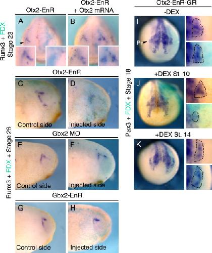 Mutual repression between Gbx2 and Otx2 in sensory placodes reveals a general mechanism for ectodermal patterning. , Steventon B , Mayor R , Streit A., Dev Biol. July 1, 2012; 367 (1): 55-65.