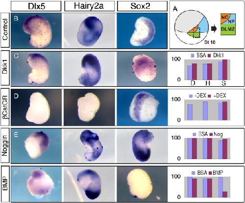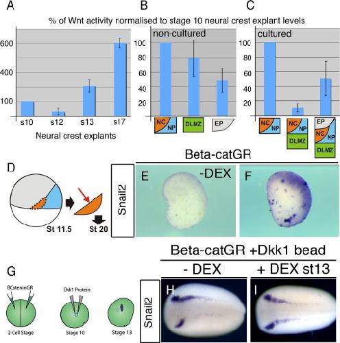 Differential requirements of BMP and Wnt signalling during gastrulation and neurulation define two steps in neural crest induction. , Steventon B , Araya C, Linker C, Kuriyama S , Mayor R ., Development. March 1, 2009; 136 (5): 771-9.