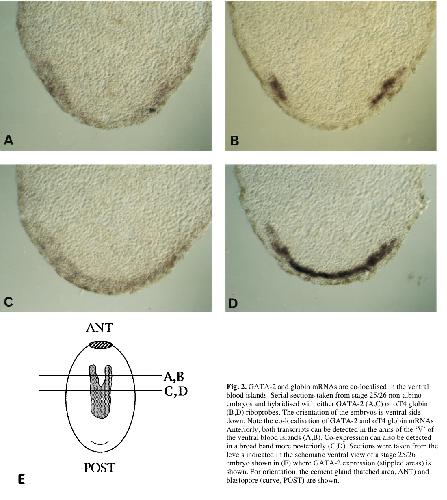 Negative control of Xenopus GATA-2 by activin and noggin with eventual expression in precursors of the ventral blood islands. , Walmsley ME, Guille MJ , Bertwistle D, Smith JC , Pizzey JA , Patient RK ., Development. September 1, 1994; 120 (9): 2519-29.
