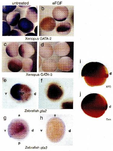 Suppression of GATA factor activity causes axis duplication in Xenopus. , Sykes TG, Rodaway AR, Walmsley ME, Patient RK ., Development. December 1, 1998; 125 (23): 4595-605.