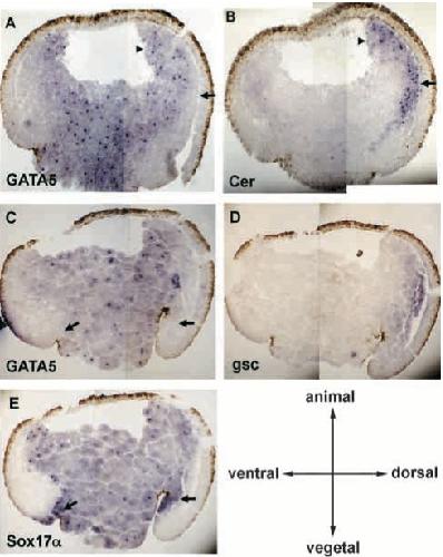 A role for GATA5 in Xenopus endoderm specification. , Weber H, Symes CE, Walmsley ME, Rodaway AR, Patient RK ., Development. October 1, 2000; 127 (20): 4345-60.