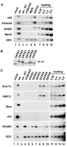GATA4, 5 and 6 mediate TGFbeta maintenance of endodermal gene expression in Xenopus embryos. , Afouda BA , Ciau-Uitz A , Patient R ., Development. February 1, 2005; 132 (4): 763-74.