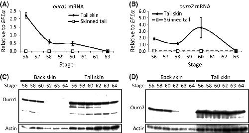 Ouro proteins are not essential to tail regression during Xenopus tropicalis metamorphosis., Nakai Y, Nakajima K, Robert J, Yaoita Y., Genes Cells. March 1, 2016; 21 (3): 275-86.