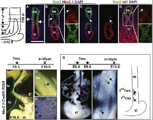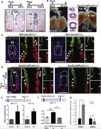 Isl1 Regulation of Nkx2.1 in the Early Foregut Epithelium Is Required for Trachea-Esophageal Separation and Lung Lobation., Kim E, Jiang M, Huang H, Zhang Y, Tjota N, Gao X, Robert J, Gilmore N, Gan L, Que J., Dev Cell. December 16, 2019; 51 (6): 675-683.e4.