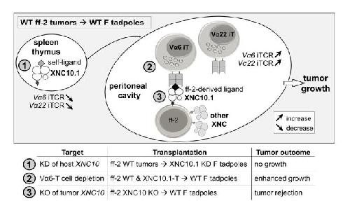 Impacts of the MHC class I-like XNC10 and innate-like T cells on tumor tolerance and rejection in the amphibian Xenopus., Banach M, Edholm ES, Gonzalez X, Benraiss A, Robert J., Carcinogenesis. July 20, 2019; 40 (7): 924-935.