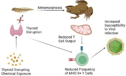 Environmental endocrine disruptors and amphibian immunity: A bridge between the thyroid hormone axis and T cell development., McGuire CC, Robert JR., Dev Comp Immunol. March 1, 2023; 140 104617.