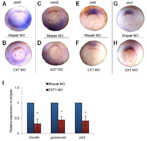 Zygotic expression of Exostosin1 ( Ext1) is required for BMP signaling and establishment of dorsal- ventral pattern in Xenopus. , Shieh YE, Wells DE, Sater AK ., Int J Dev Biol. January 1, 2014; 58 (1): 27-34.