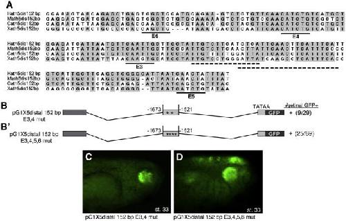 bHLH-dependent and -independent modes of Ath5 gene regulation during retinal development. , Hutcheson DA , Hanson MI, Moore KB , Le TT, Brown NL , Vetter ML ., Development. February 1, 2005; 132 (4): 829-39.