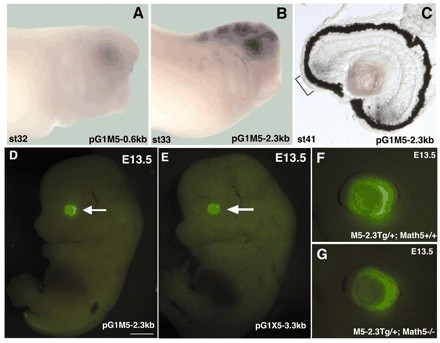 Pax6 regulation of Math5 during mouse retinal neurogenesis. , Riesenberg AN, Le TT, Willardsen MI, Blackburn DC , Vetter ML , Brown NL ., Genesis. March 1, 2009; 47 (3): 175-87.